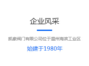 凱豪閥門有限公司位于溫州海濱工業(yè)區(qū),企業(yè)占地面積20000平方米。初建于 1985 年,注冊(cè)資金5008萬;工廠主要生產(chǎn) ANSL、JIS、DIN 和 GB 標(biāo)準(zhǔn)的閘閥、截止閥、止回閥、球閥、蝶閥、